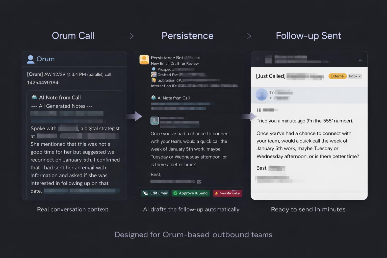 Currently piloting with outbound teams running Orum-based sales motions. Early users report faster follow-ups, better message quality, and less rep admin time.